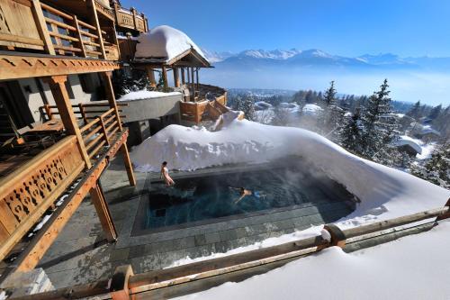 A tranquil oasis in the heart of Crans-Montana offering a heated pool, jacuzzi, hammam and sauna, along with a range of treatments by Cinq Mondes specialists.